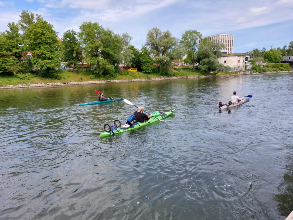 Gepaddelt wurden je nach Tagesplan zwischen 16 und 60 Kilometer. Nur an den Tagen, an denen Stadtbesichtigungen auf dem Programm standen, war das Pensum geringer und es wurde da auch mal in einer Pension übernachtet. Höhepunkte der Tour waren die Städte Belgrad (Serbien), Russe (Bulgarien) und Tulcea (Rumänien), die letzte Stadt vor dem Mündungsdelta ins Schwarze Meer. Hier beginnt das eindrucksvollste Paddelerlebnis: Es geht vier Tage durch das Eiserne Tor, wo der Fluss südlich der Karpaten eine eindrucksvolle Bergkulisse durchfließt. Weniger schöne Erlebnisse gab es nach den Worten von Andreas Schneid nicht wirklich. Er und seine Begleiter sahen die Aktion als Abenteuer, und so war jeder Tag ein guter Tag. Einzig der zunehmende Müll am Flussufer ab Serbien und die vielen Staustufen, allein zehn davon in Österreich, welche die Fließgeschwindigkeit stark herabsetzten und das Paddeln somit sehr mühsam werden lassen, schmälerten das Vergnügen etwas.